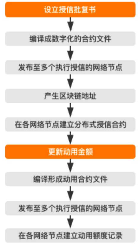 首先,由银行建立一个私有区块链网络,全球各分行作为执行授信的节点。各节点都运行同一个共识软件程序,分布式存储授信额度批复书和授信额度数据,并记录所有历史动用记录信息,并基于加密技术对信息进行加密处理。 然后,用户可以在银行总行、分行或支行设立授信批复书、新增跨境共享额度、建立跨境共享额度批复书等操作。节点系统将授信批复书编译成数字化合约文件,并打包成区块发布至多个执行授信的节点。 当用户在境外分行或支行动用授信额度时,动用记录会编译成数字化合约文件,并打包成区块发布至多个授信的节点。 通过该方法,不仅提高了企业授信额度的使用率,缓解现金流压力;还提高了银行跨境额度管理能力。